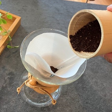 豆を挽き終わり、今回はペーパードリップ式で淹れていきます。