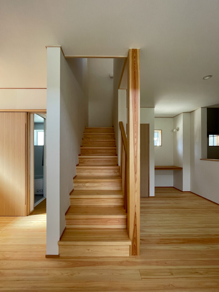 前回ご紹介した時は、大工さんの工事も進み、建物工事も中盤に差し掛かった頃でした。あれから約2ヶ月弱…大工工事も完了し、内装工事、設備機器・照明器具取付、外構工事と進み、ついに竣工となりました!