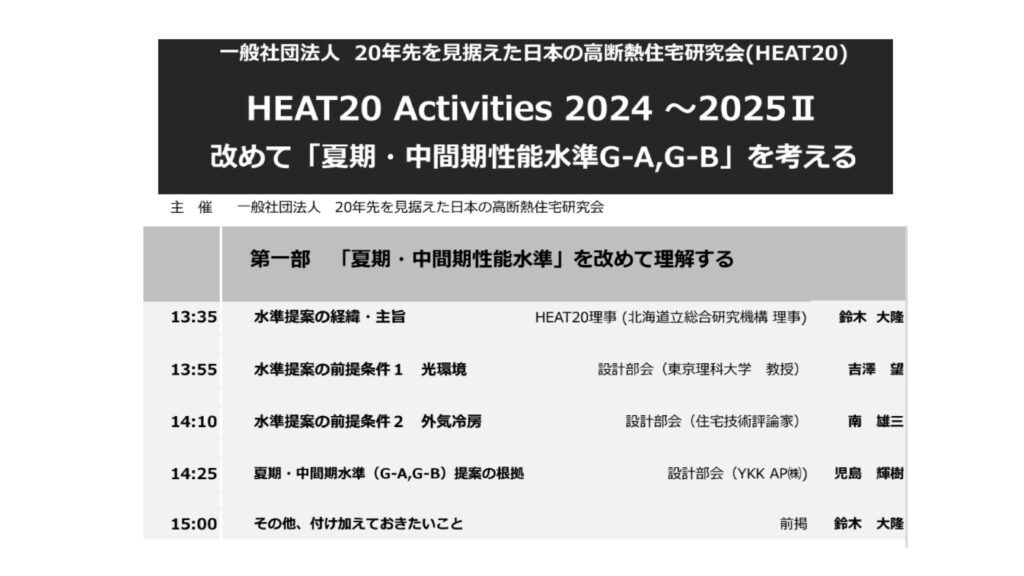 こんにちは、今回は断熱性能を提案しているHEAT20を推進する中心の先生方が最新のテーマ