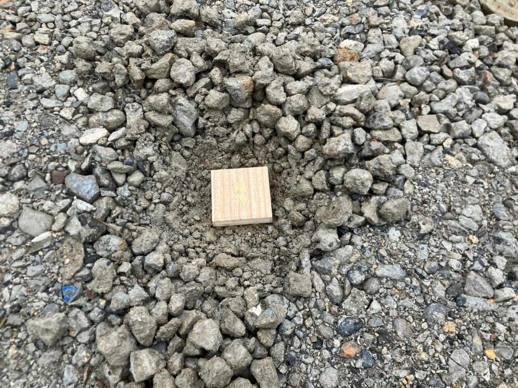 地鎮祭で神主さんからお預かりした鎮め物を埋めました。
