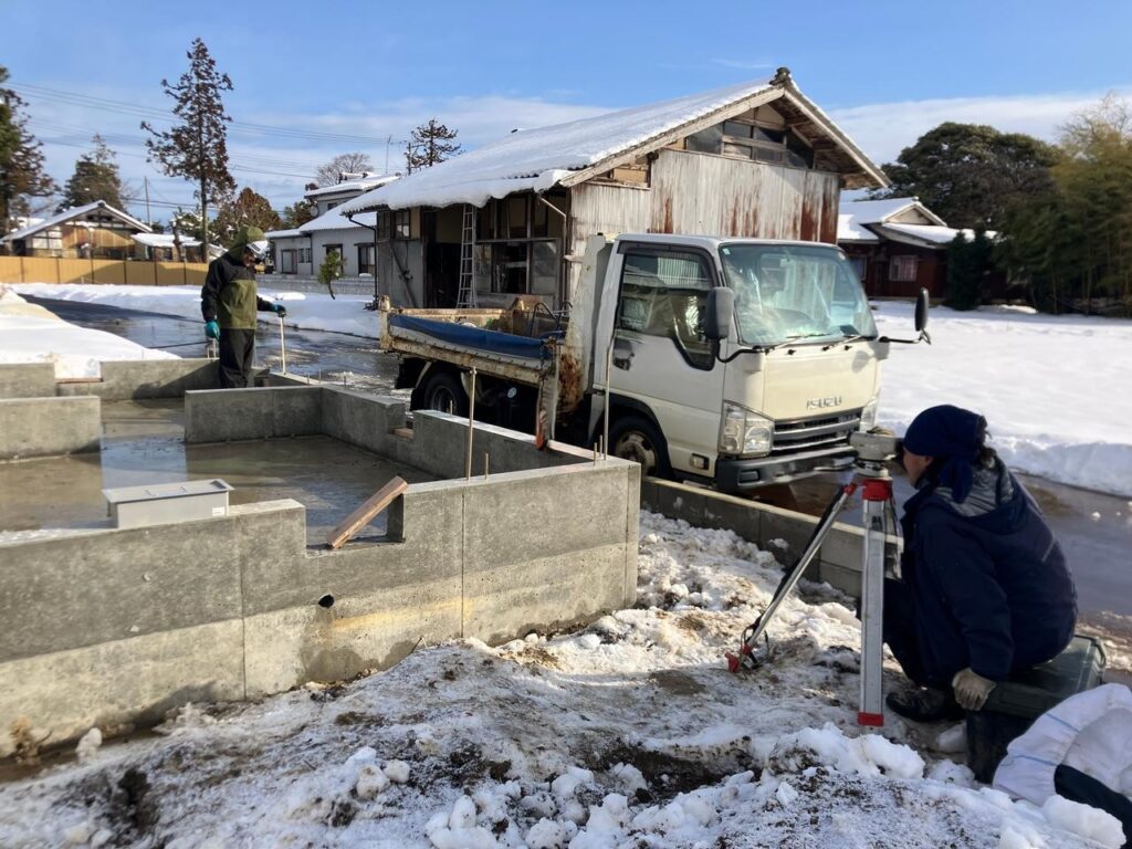 基礎の上から建物を建てていくため、高さに誤差があっては大変です。