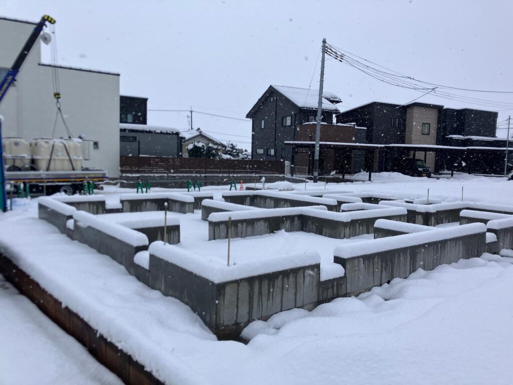 大雪が降る前に型枠の中へコンクリートを流し込むことができました。