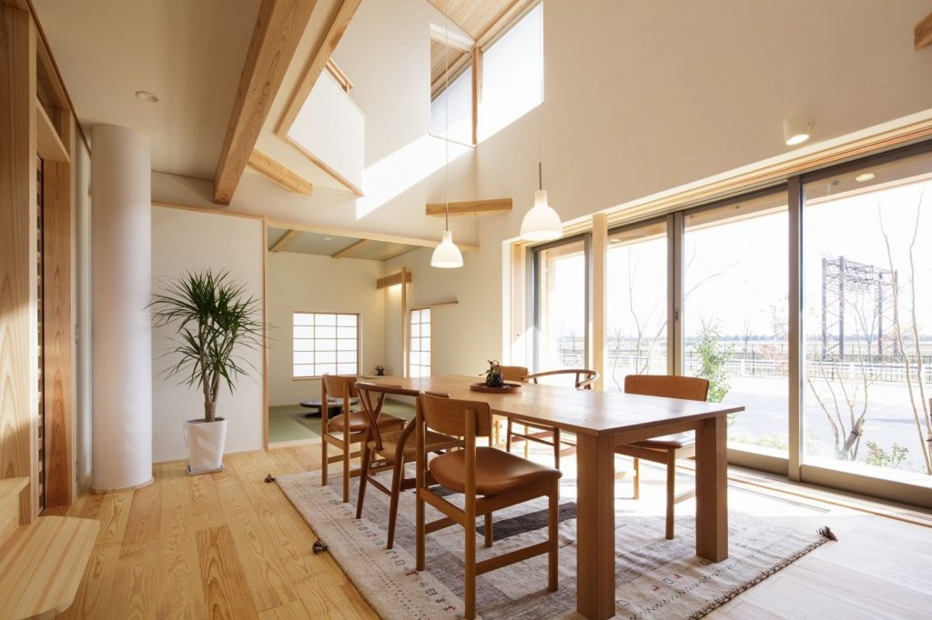 リビング兼ダイニングで叶える小さくつくって広く住む木の家長潟モデルハウス(※売却済)